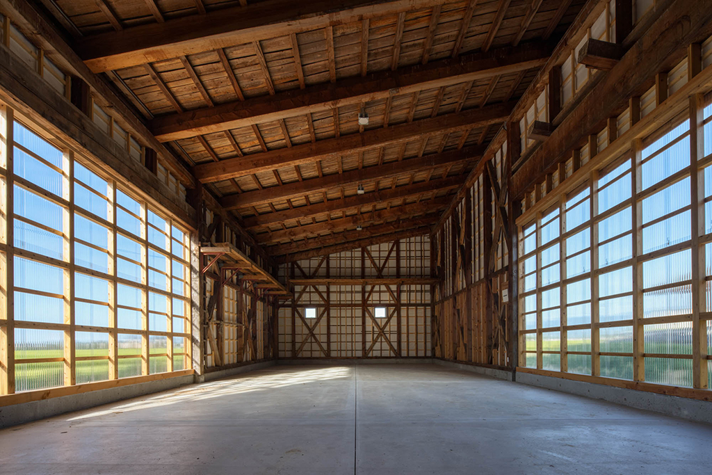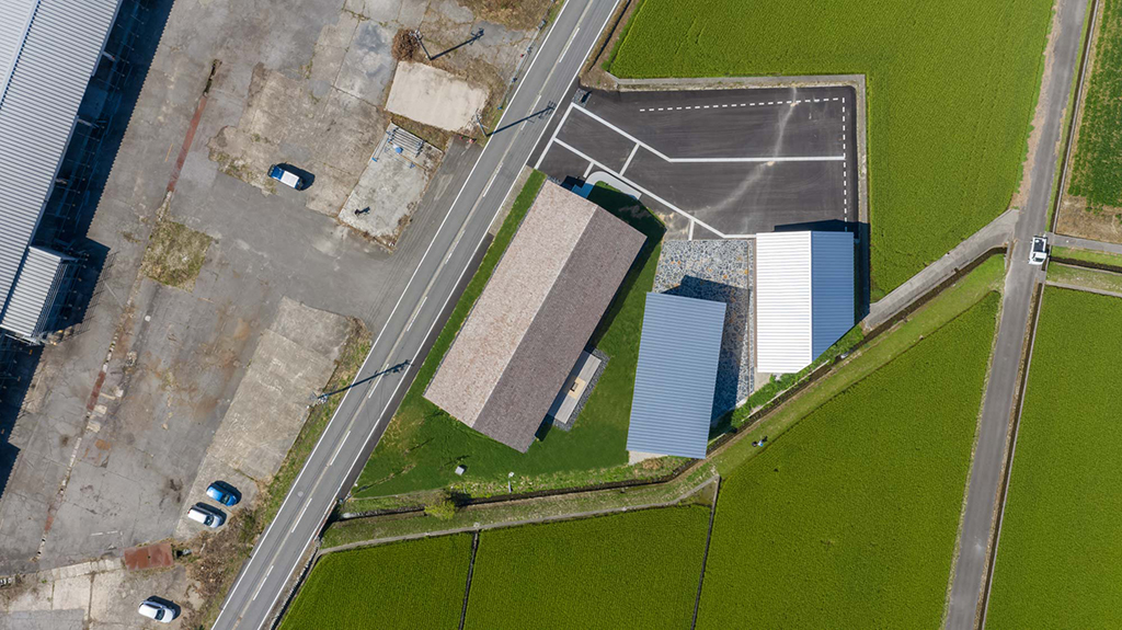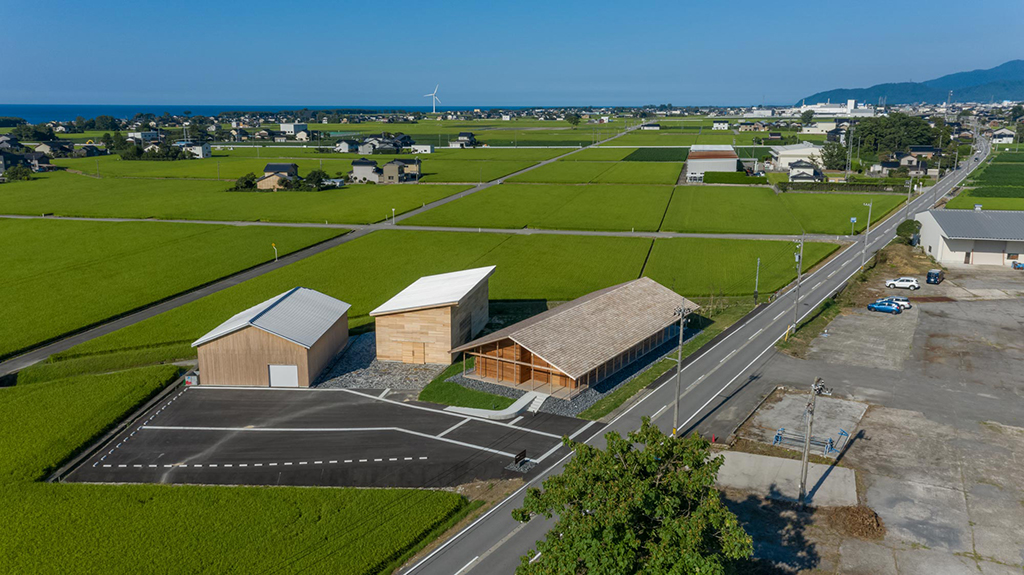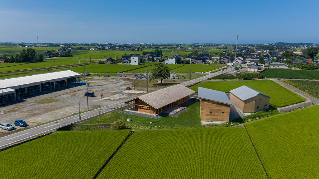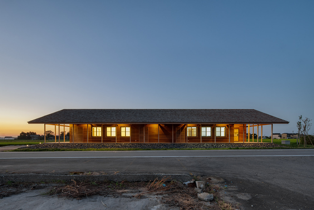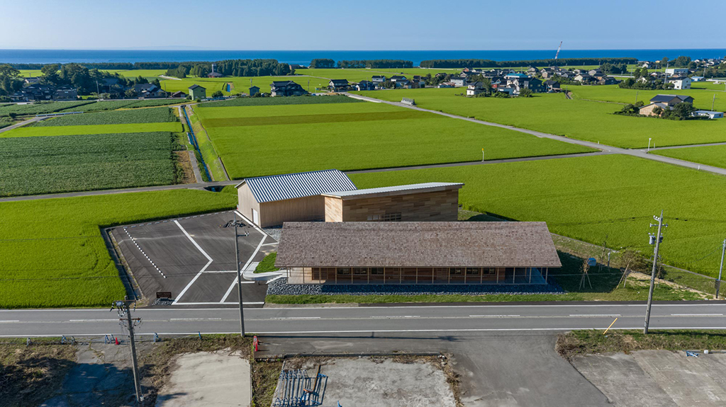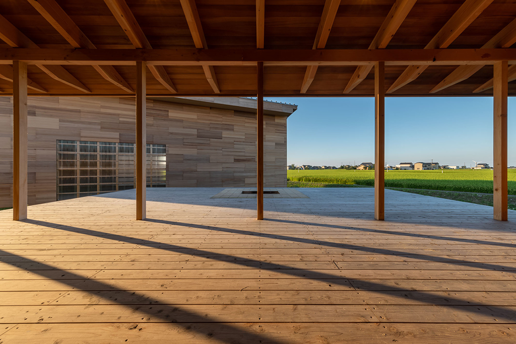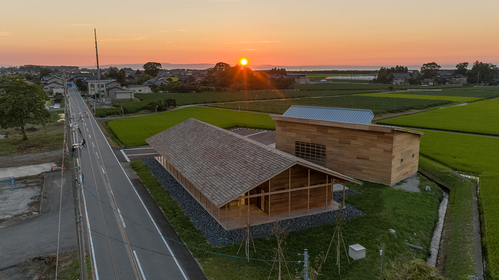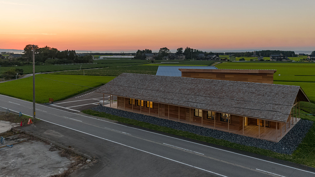 建築資材サプライヤーカンパニーのための富山に建築した北陸事務所。 屋根・外壁・床・デッキ等はチャネルオリジナルが扱う木材。 立山連峰を背景にした雄大な風景の中に建っている。