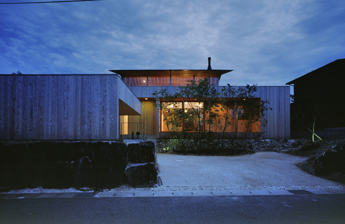 建つほぼ平屋の木造住宅。