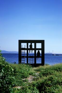 三河・佐久島アートプラン21のプロジェクトとして建てられた建築。 満潮時には波打ち際まで3mしかなく、 波の音を聞きながらひるねをしたり、 海を見ながらボーッとすると、とても気持ちが良い。